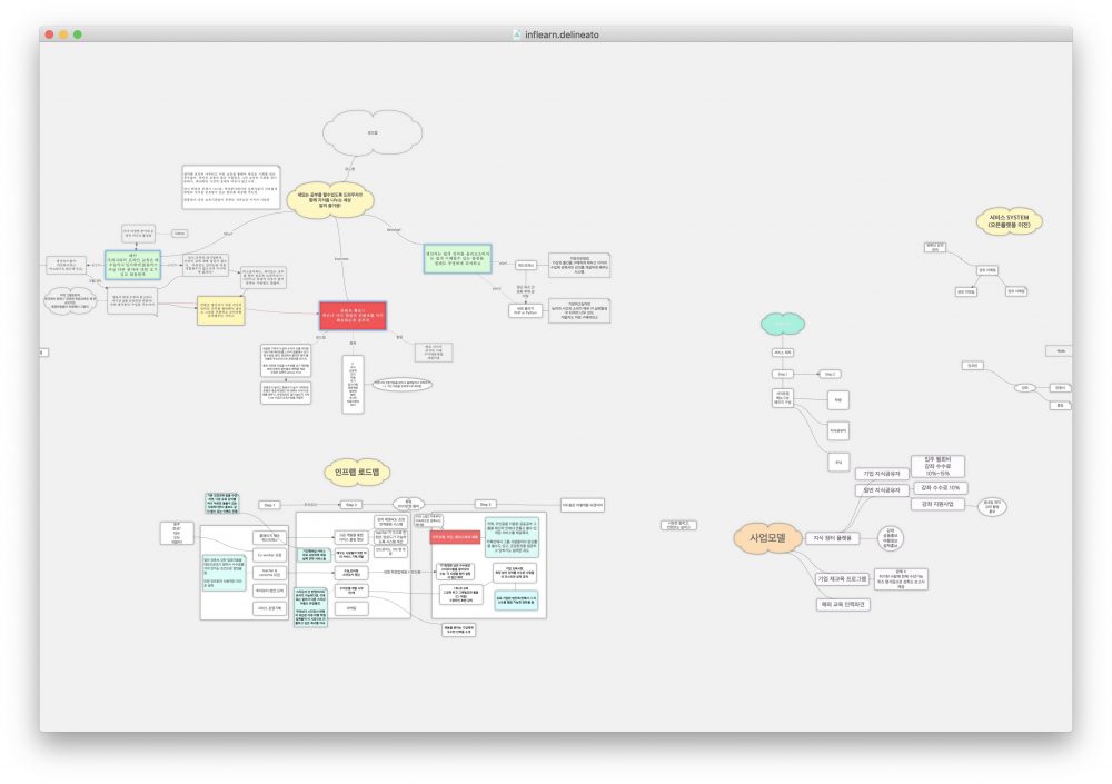 사실 인프런 서비스의 리뉴얼은 서비스 만들기 전부터 계획에 있었다. 2015년 여름쯤만든 인프런 구성을 하던 마인드맵에 이런 내용이 있다.