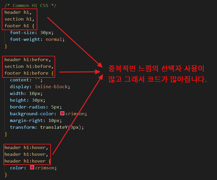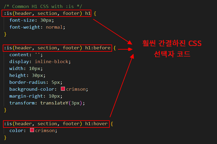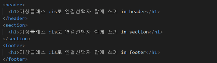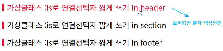 가상클래스 :is로 연결선택자 짧게 쓰기