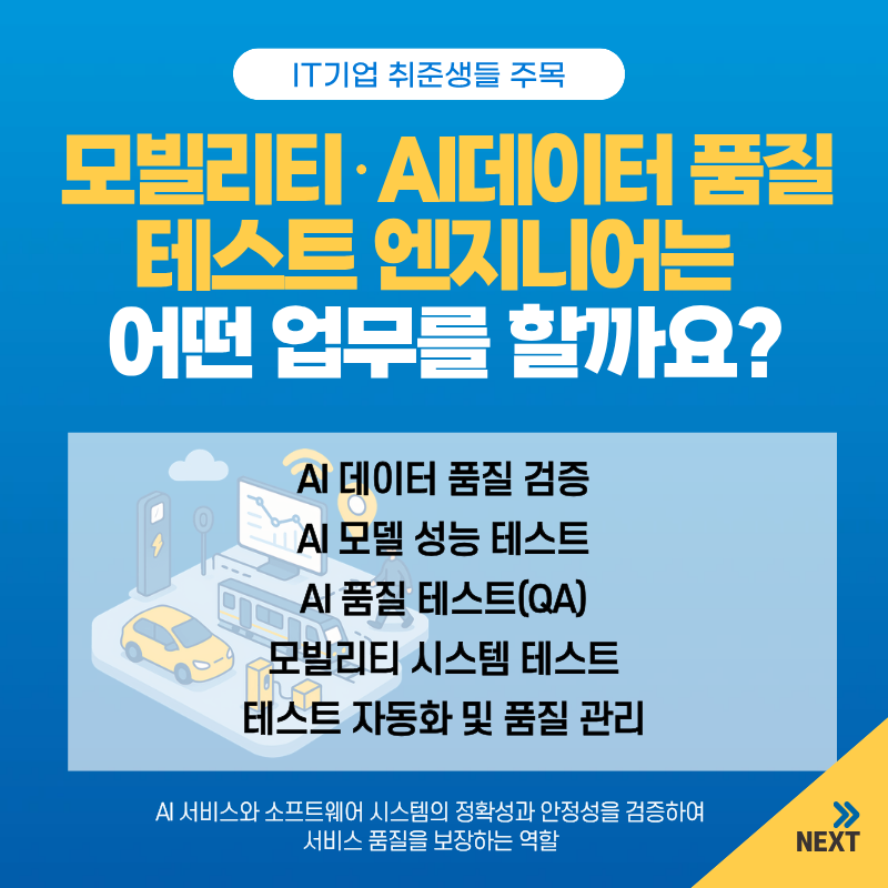 모빌리티·AI데이터 품질 테스트 엔지니어 취업연계과정 교육생을 모집중입니다.