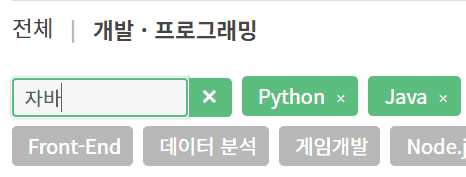 바로 강의 검색페이지에서 초록색 필터를 뿅 누르면 원하는 스킬태그가 자동으로 필터링 된다는 사실!