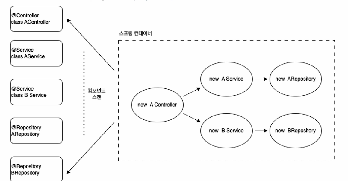 의존성 주입(DI)는 클래스내에서 다른 객체를 사용할때 내부에서 만드는게 아니라 외부에서 주입받아 사용하는 방식.