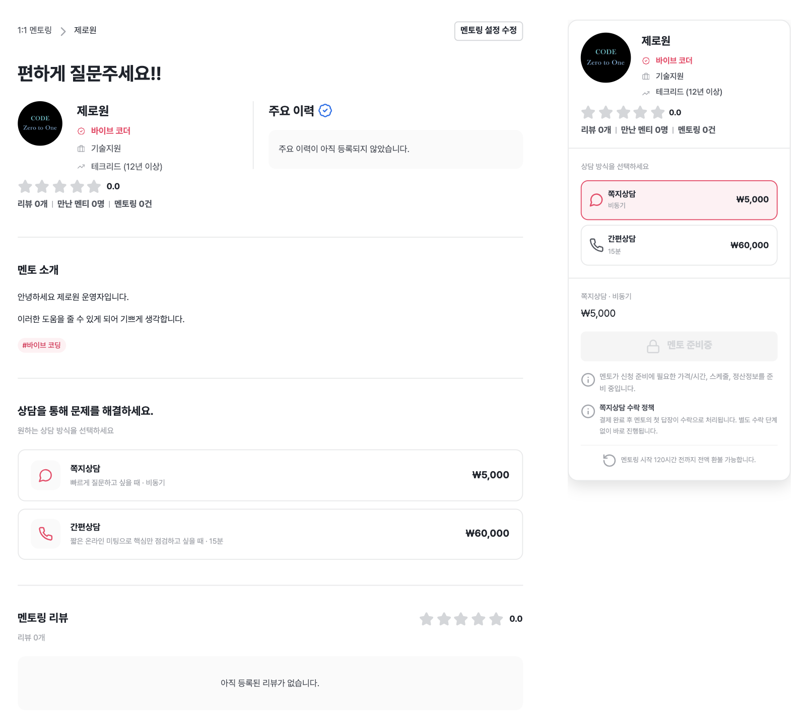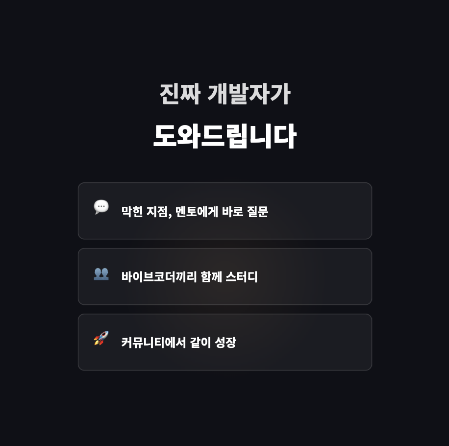 개발자가 멘토가 되어 바이브코더를 돕는 생태계를 만들고 있습니다.