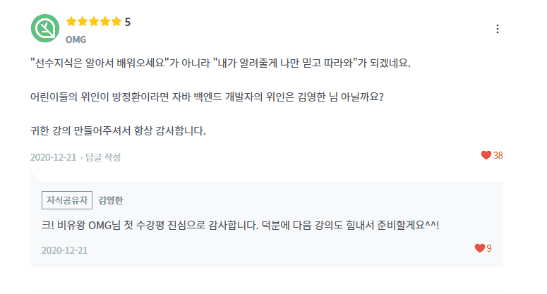 수강평으로도 좋은 후기 공유해주시면 영한님에게 많은 힘이 될 것 같습니다 :)