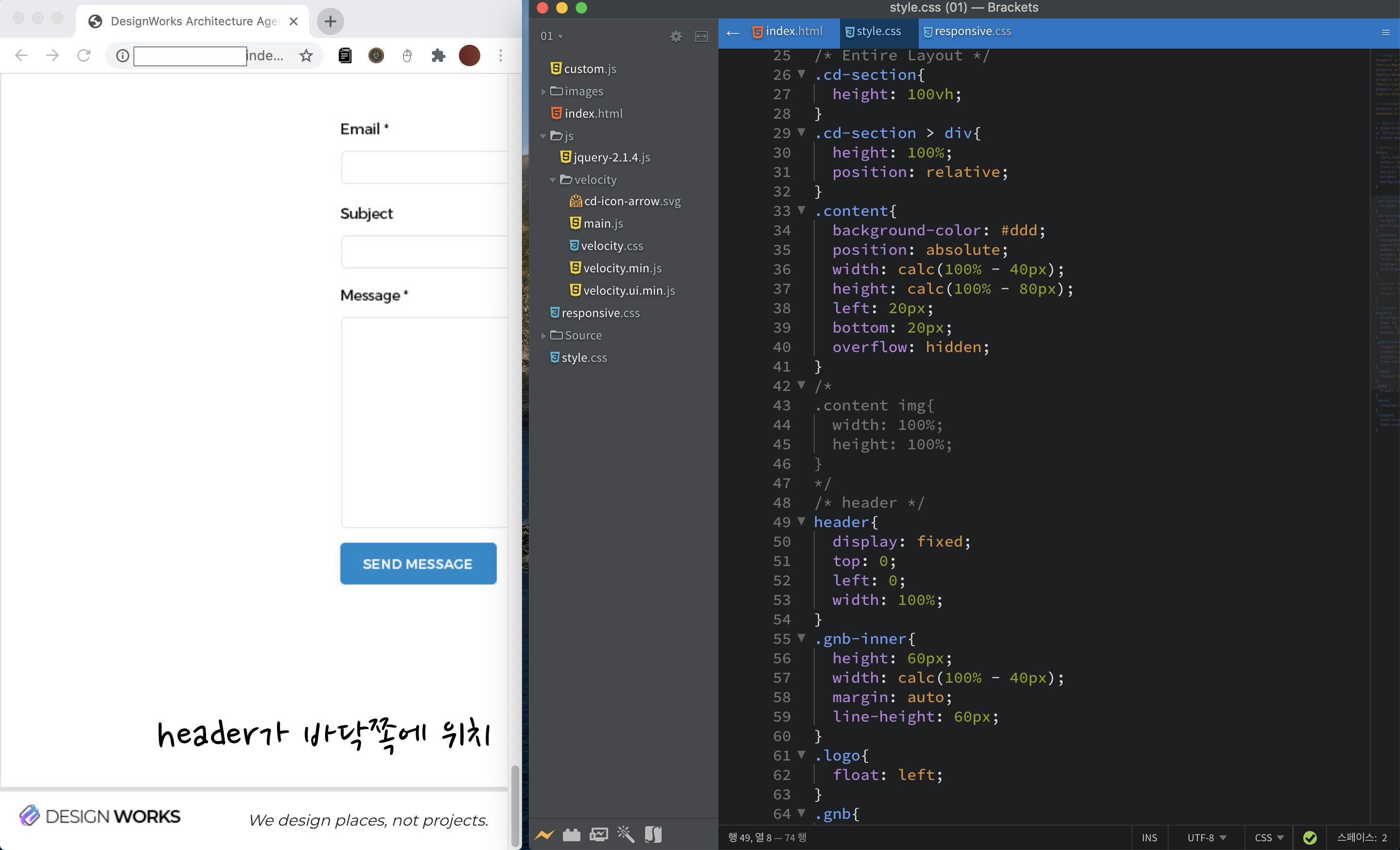 그리고 모바일 버전으로 볼때 자꾸 header가 밑에 배치되네요.. 코드 작성도 똑같이 했는데 뭐가 문제일까용?ㅠㅠ