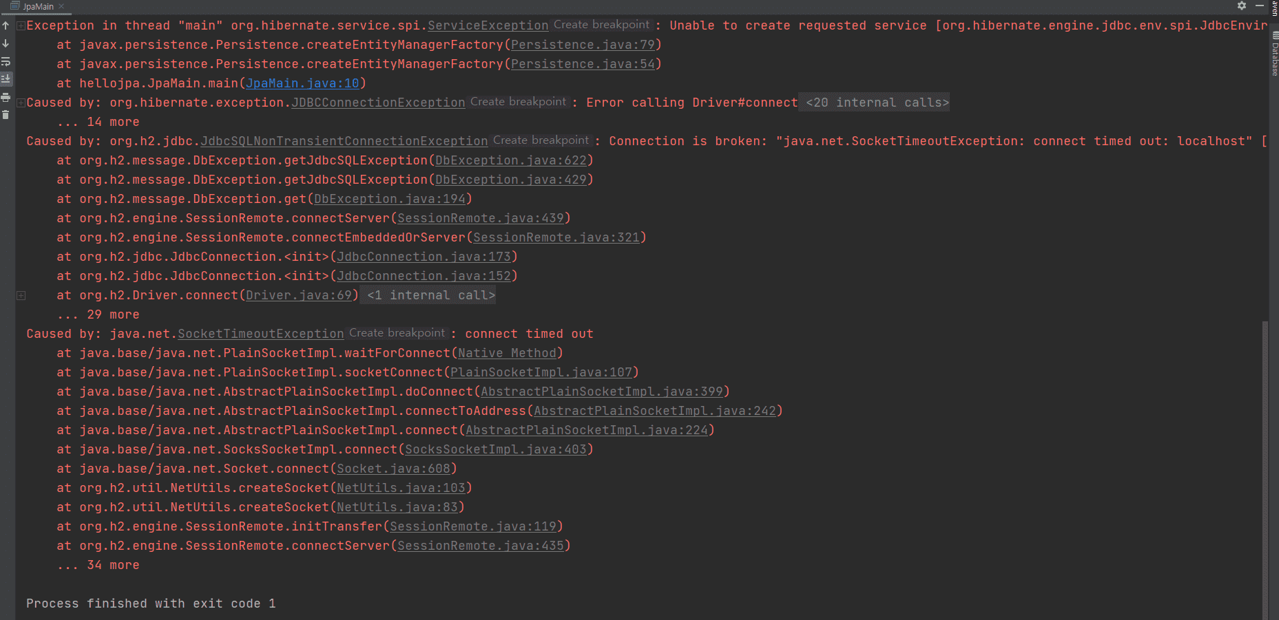 컴터 reset해보니 올라오긴 하는데 강사님과 다르게 exception들이 터지네요.