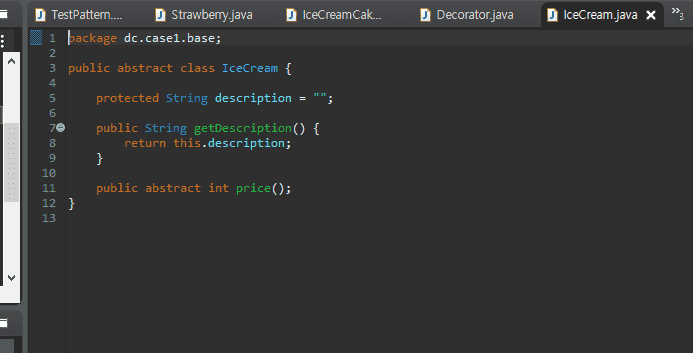 이 데코레이터 클래스는 아이스크림 클래스를 상속받는데 왜 price 메소드를 구현하라는 강제메세지가 없는건가요..? 답변 부탁드립니다~