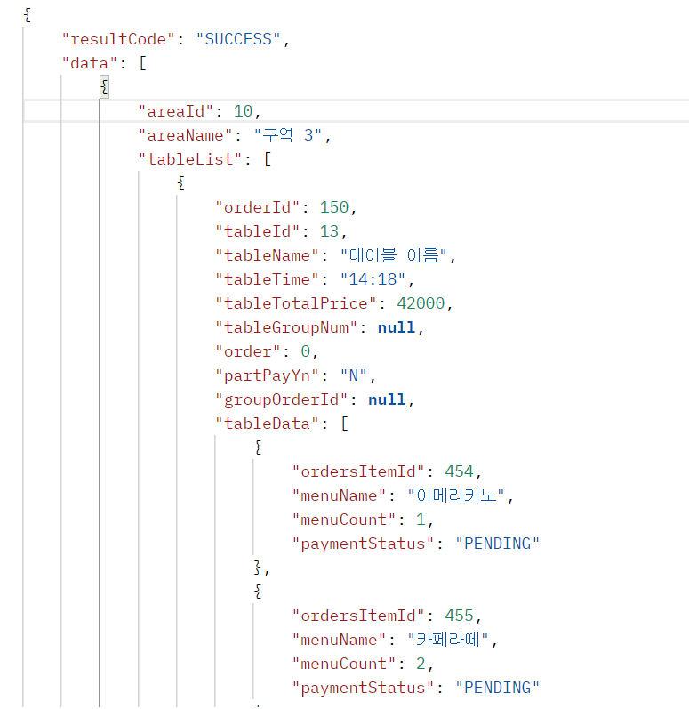 아래와 같은 형식으로 API 결과를 반환하려 합니다.