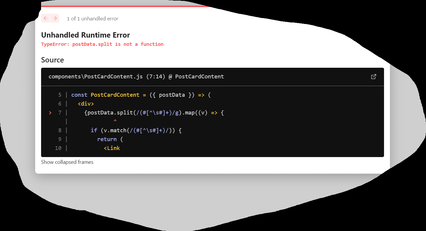 postData가 undefined인 것 같네요. PostCard에서부터 빈 데이터가 내려온 것 같습니다. 게시글을 불러올 때 mainPosts 같은 곳에 잘못 불러오셨을 확률이 높습니다.