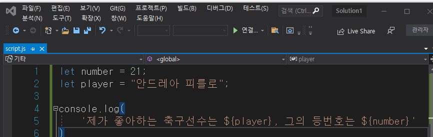 형식으로 변수나 표현식을 넣어주셔야 합니다. 코드를 확인해보니 ${player}