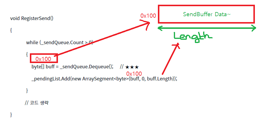 하지만 매번 반복문이 실행될 때마다 새로 만들어진다면 ArraySegment가 buff에 있는 것을 가리키는데