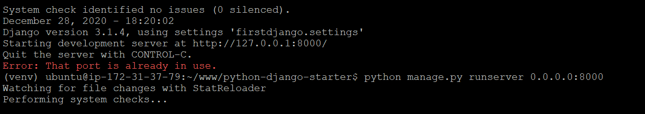 Django version 3.1.4, using settings 'firstdjango.settings'