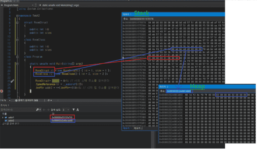 참고로 힙과 스택은 아래처럼 확인이 가능합니다.