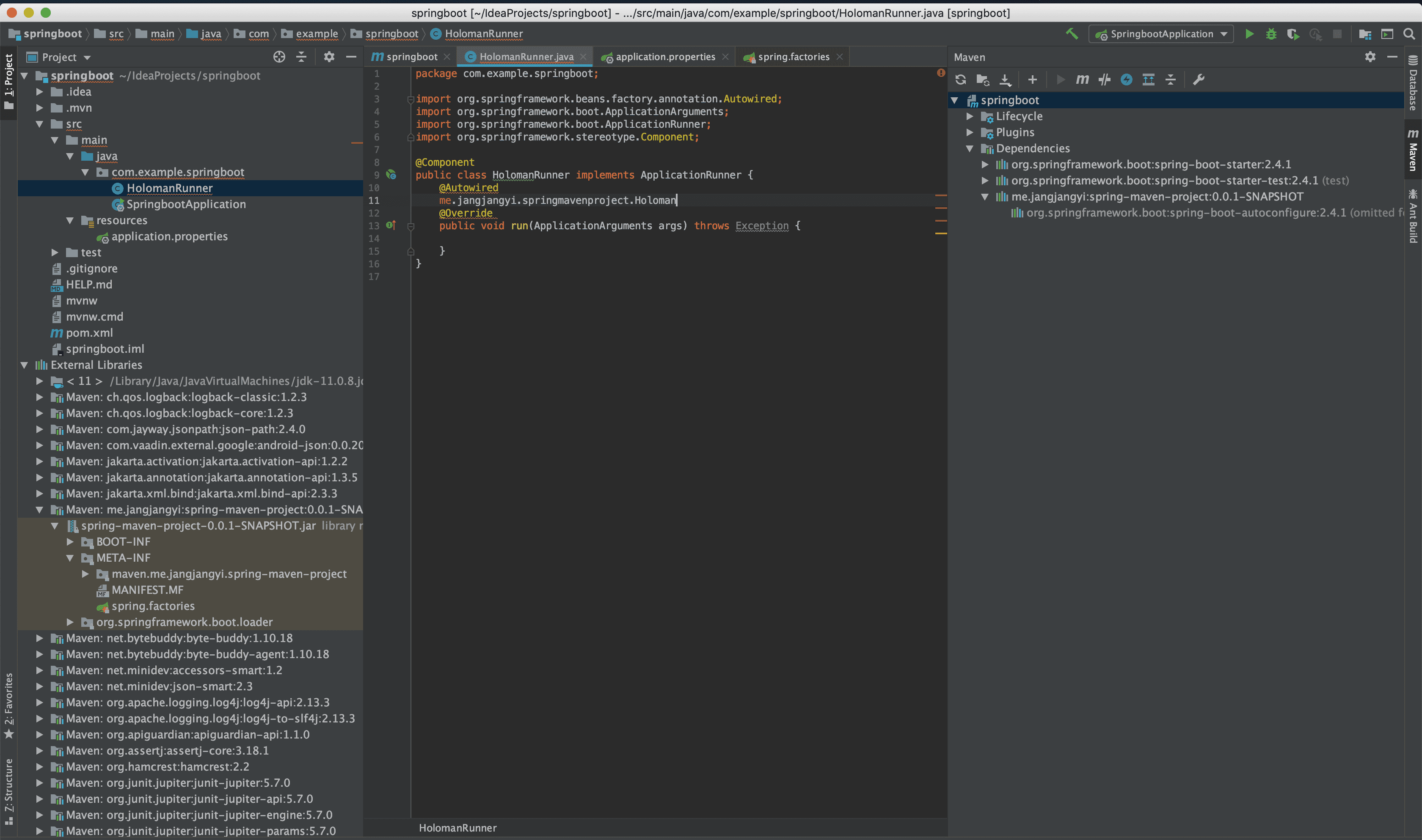메이븐으로 등록을 했는데 Holoman의 클래스를 생성할 때 패키지이름까지 나오게 되고 import가 되지않았다고 나오게 되네요 ㅠㅠㅠㅠ 캐시까지 비웠다가 다시 해봤는데도 Cannot resolve 에러가 나서 ㅠㅠㅠ 어떤 문제인지 알 수 있을까요?