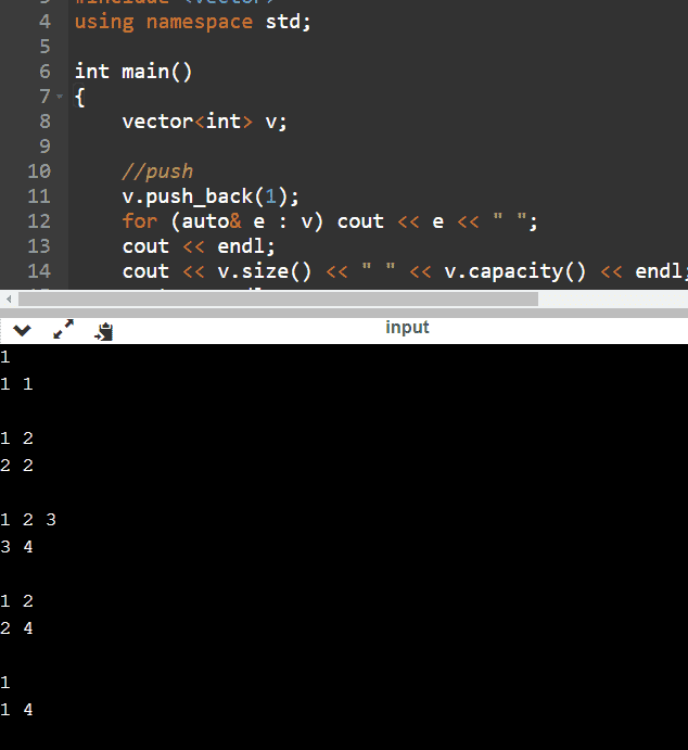 예외적으로 3을 push한 이후 갑자기 capacity가 2만큼 늘어났습니다.
