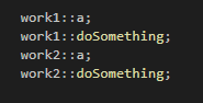 그렇다면 메인 함수에서 단순히 work1::a; work1::doSomething;을 쓸 때에는 어떤 효과를 가지게 되나요?