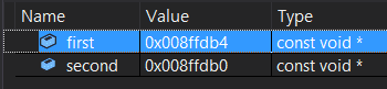 의 함수에서 first와 second가 갖는 주소값이
