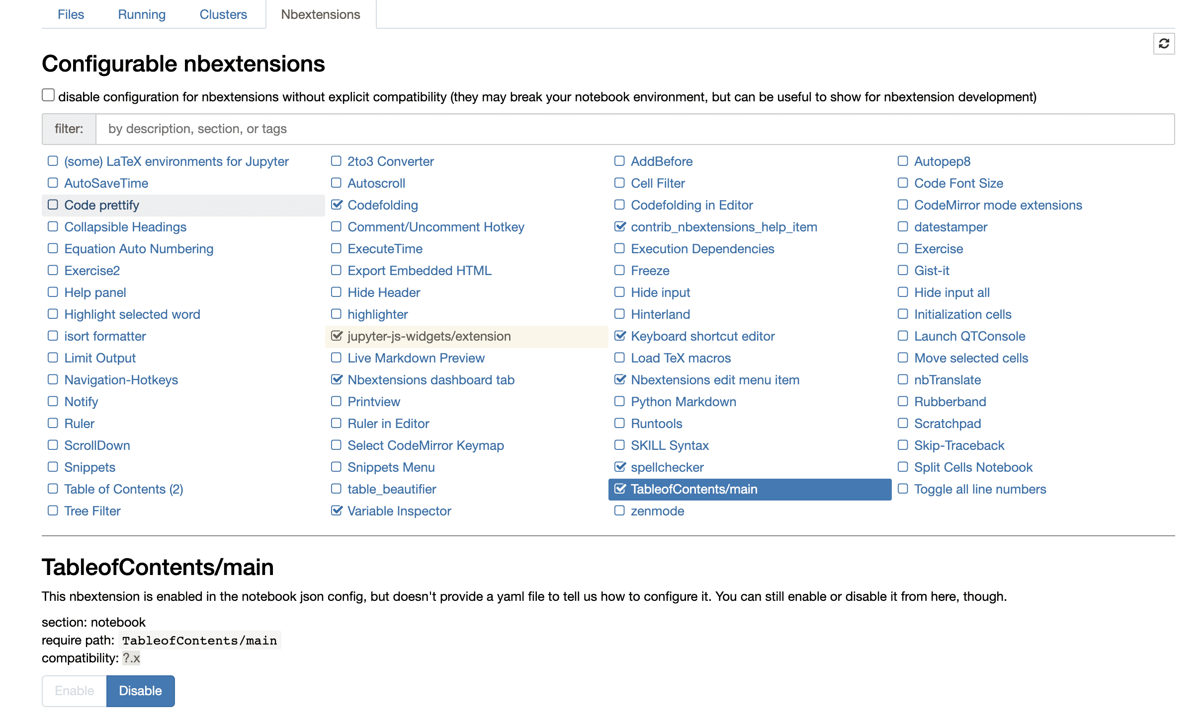 (선택) Jupyter nbextensions 로 목차 기능 사용하기