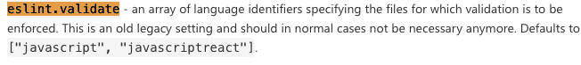 eslint.validatesetting. The same is true for HTML and Vue.js files.