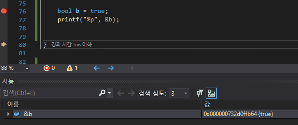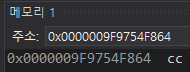 초기화 하지 않은 b 의 주소를 통해 b 의 메모리를 들여다보겠습니다.