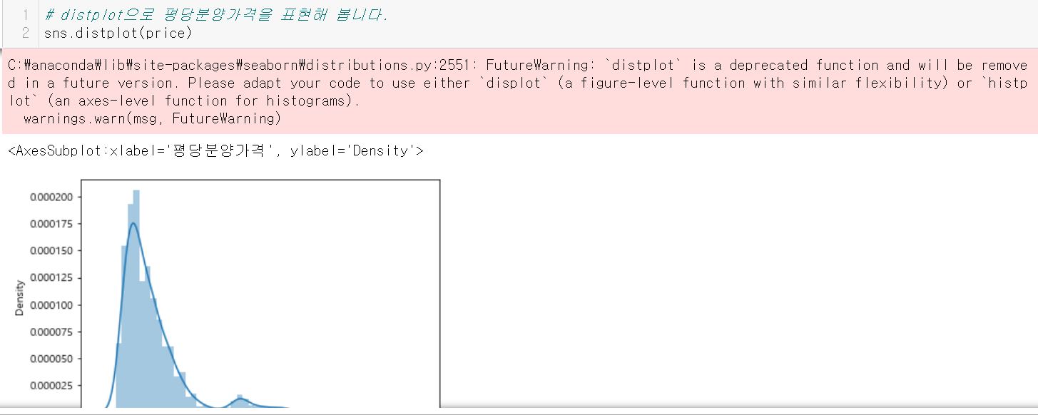 그래서 앞으로 seaborn 최근 버전에서 업데이트 될 예정이니 distplot 대신 displot을 사용해 달라는 공지사항으로 보시면 됩니다.