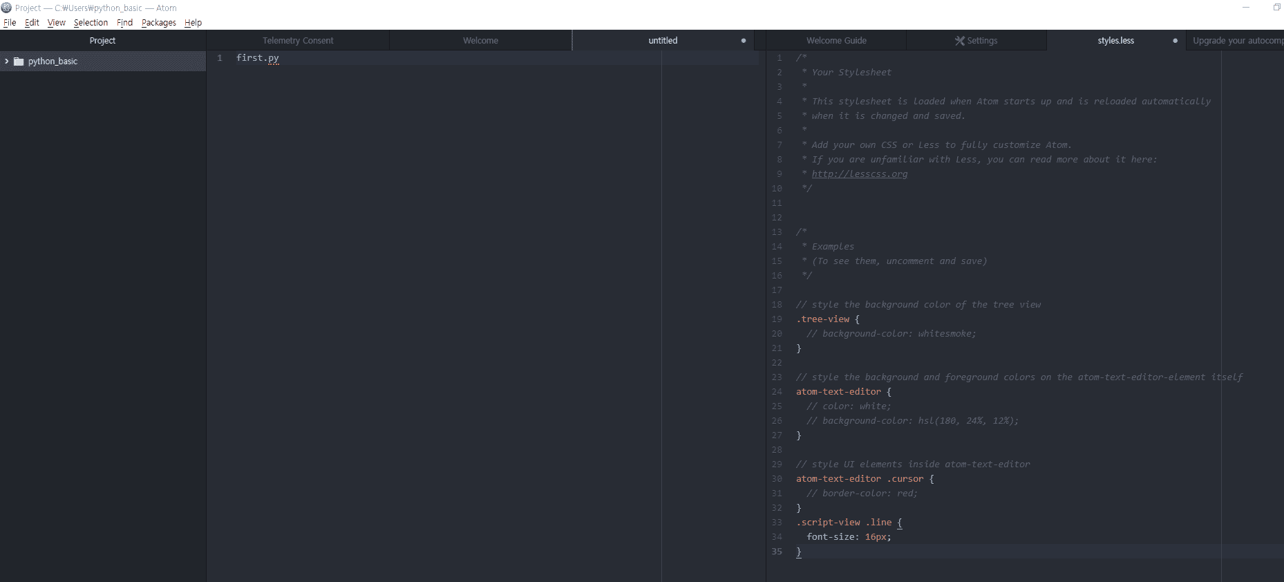 Ctrl + S를 하여 저장할 때 이름을 first.py로 저장해보세요~~