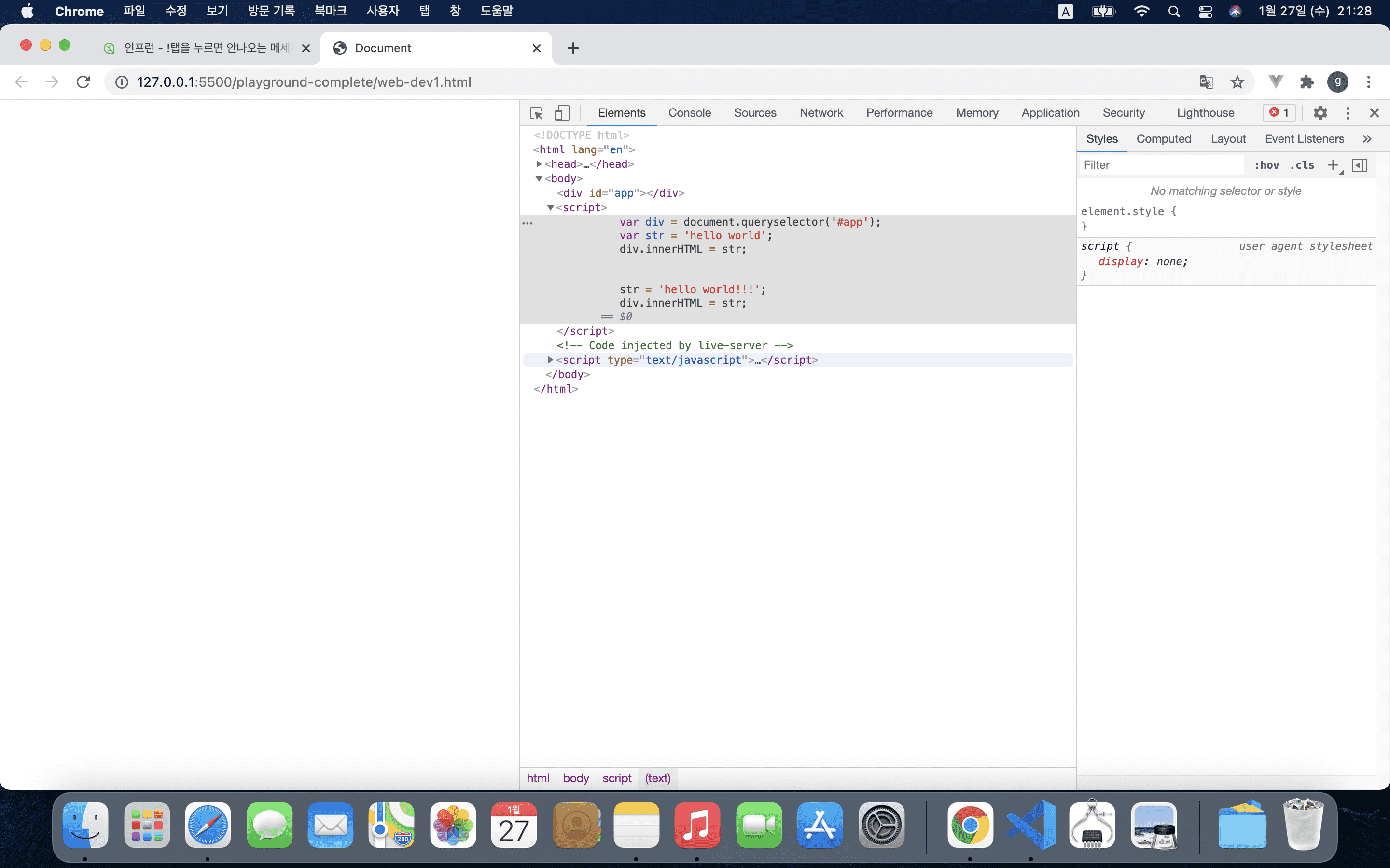 기존 웹 개발 방식(HTML, Javascript)