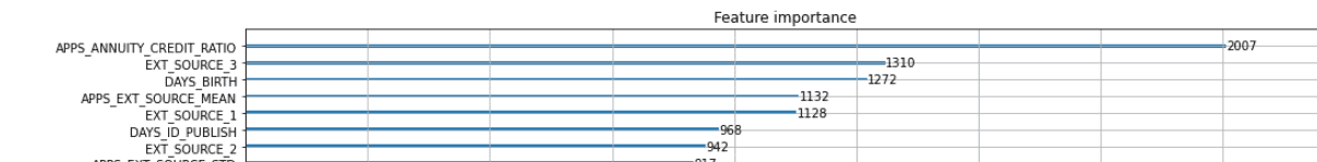 그런데 아래 히트맵과 Feature importance를 볼 때, DAYS_BIRTH는 EXT_SOURCE 1, 2보다 상관계수가 절반임에도 Feature importance가 높습니다.