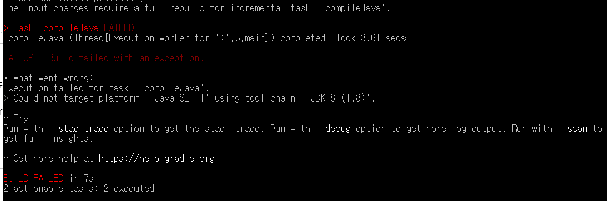 window사용하고 있고, 다른 분들 남기신 거 봐서 gradlew clean build --info명령어 실행해봤는데