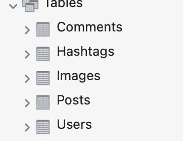 실행 시 에러는 발생하진 않습니다. 기존 User, Comment, Hashtag, Post, Image 모델만 생성하고 다대다 관계의 중간 테이블은 (Like, PostHashtag, Follow) 생성하지 않습니다 ...