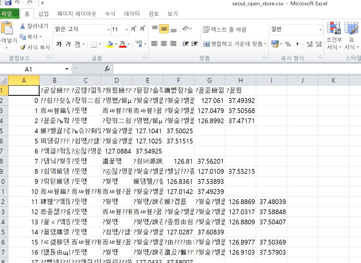 df_seoul.to_csv("seoul_open_store.csv")로 엑셀파일을 만들었는데