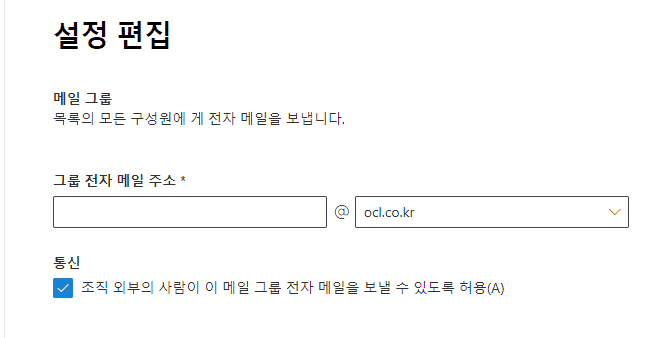 >> 또 다른 방법으로는 만들 때 배포 그룹으로 만들어보세요! 사서함이 별도로 생기진 않으며 구성원에게 각각 메일이 전송됩니다. 하지만 전체 메일 사서함을 별도로 추가가 되지 않아 구분이 어려울 수 있습니다. >> 그룹 비교 바로가기