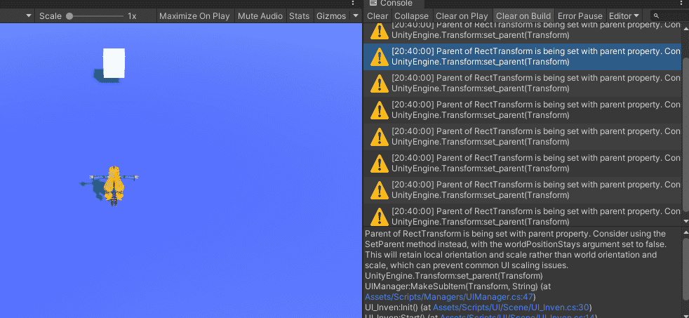 그 부분은 고쳐서 실행을 해보면 이유를 알 수 있습니다.보시다시피 유니티가 우리한테 엄청 화를 냅니다.