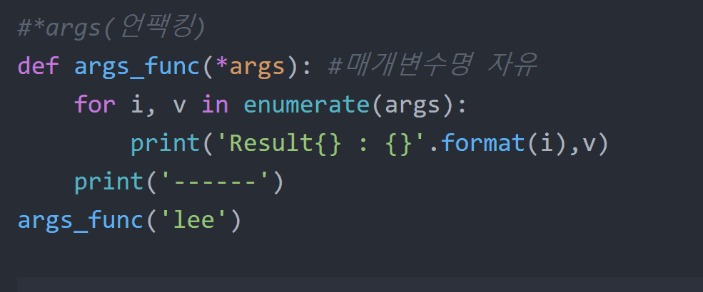 function1-2, 강의중 args, 언팩킹