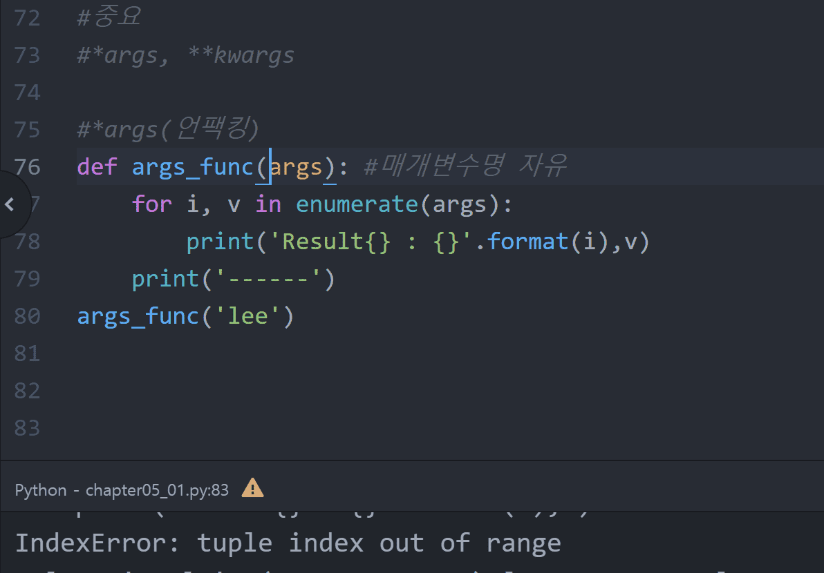 2.argument 함수를 쓰려고 *를 사용했는데 *args가 변수처럼 입력이 됩니다. 왜 그런걸까요.