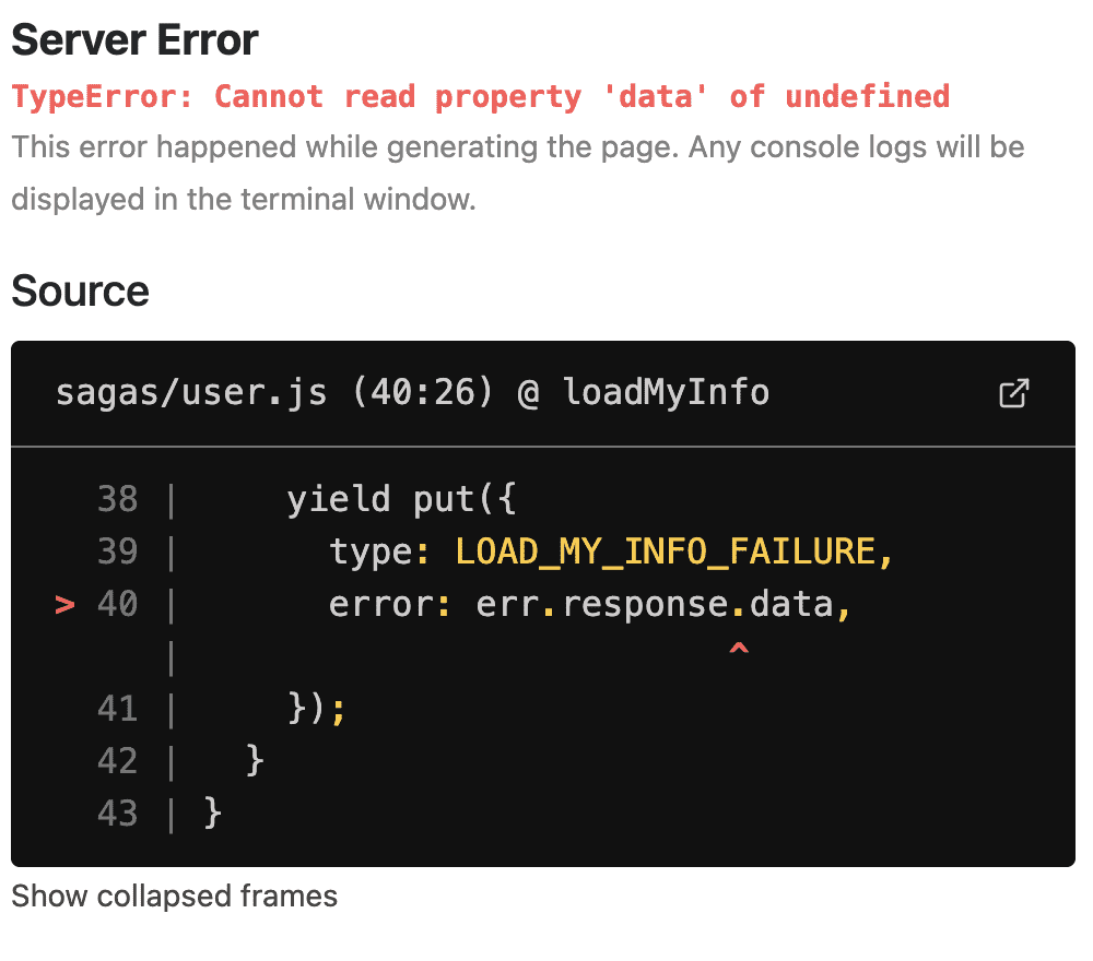Error: Error serializing `.initialState.user.loadMyInfoError` returned from `getServerSideProps` in "/". Reason: `undefined` cannot be serialized as JSON. Please use `null` or omit this value.