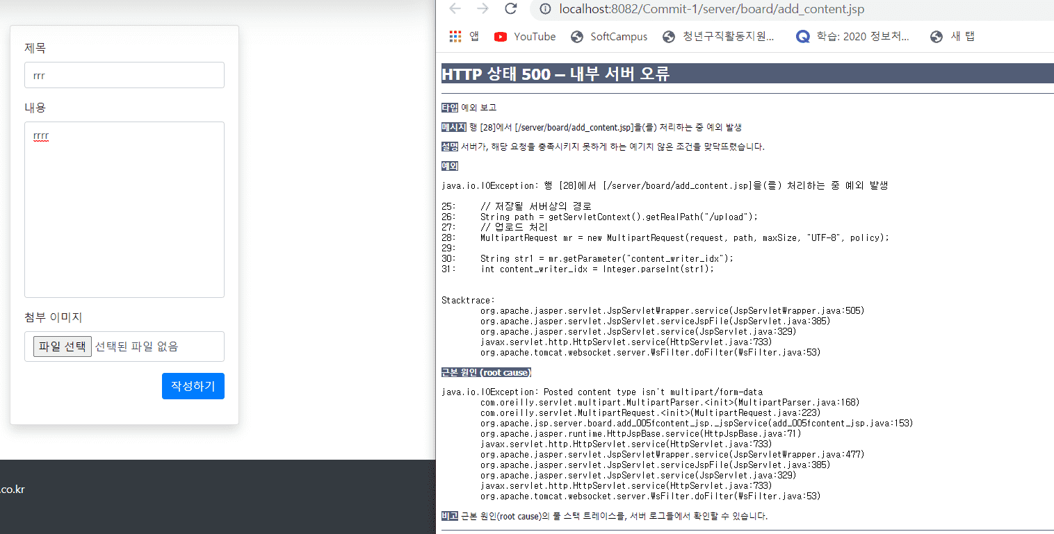 글작성하기 입력시 작성하기버튼이 먹혀야되는데 먹히질 않습니다.. 구글링해서 찾아보니까 현재 쓰는 톰캣버전은 8,9버전이라 안되는것 같더라구요이거 해결해주시면 안좋게 후기쓴거 지워드릴게요 제발좀 도와주세요