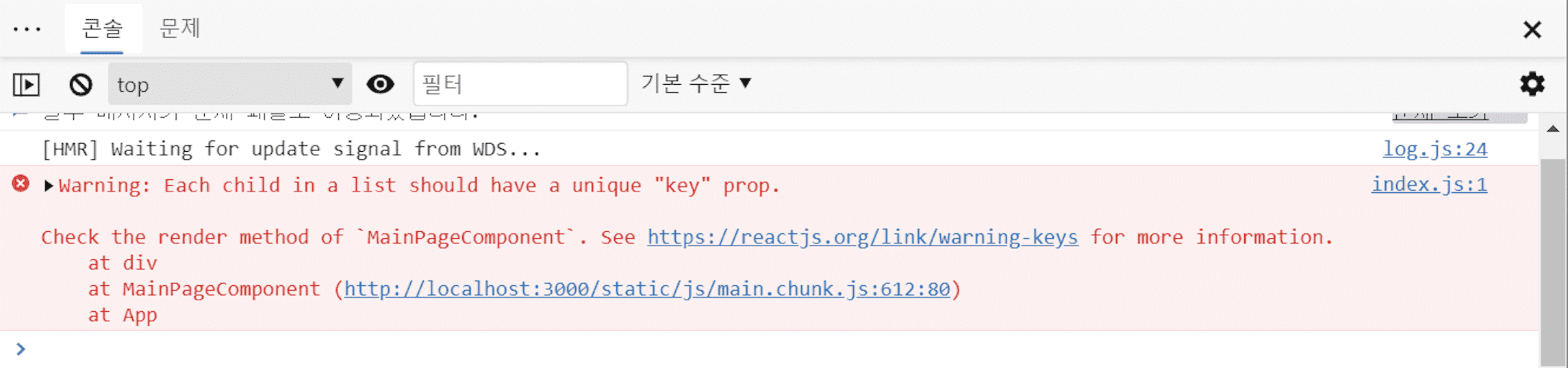 화면은 정상적으로 작동하지만, 콘솔에서 Each child in a list should have a unique "key" prop 이라는 warning이 발생합니다...
