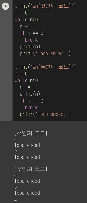 그러면 두번째 코드는 결론적으로 break가 안된거라고 보면 되겠죠?