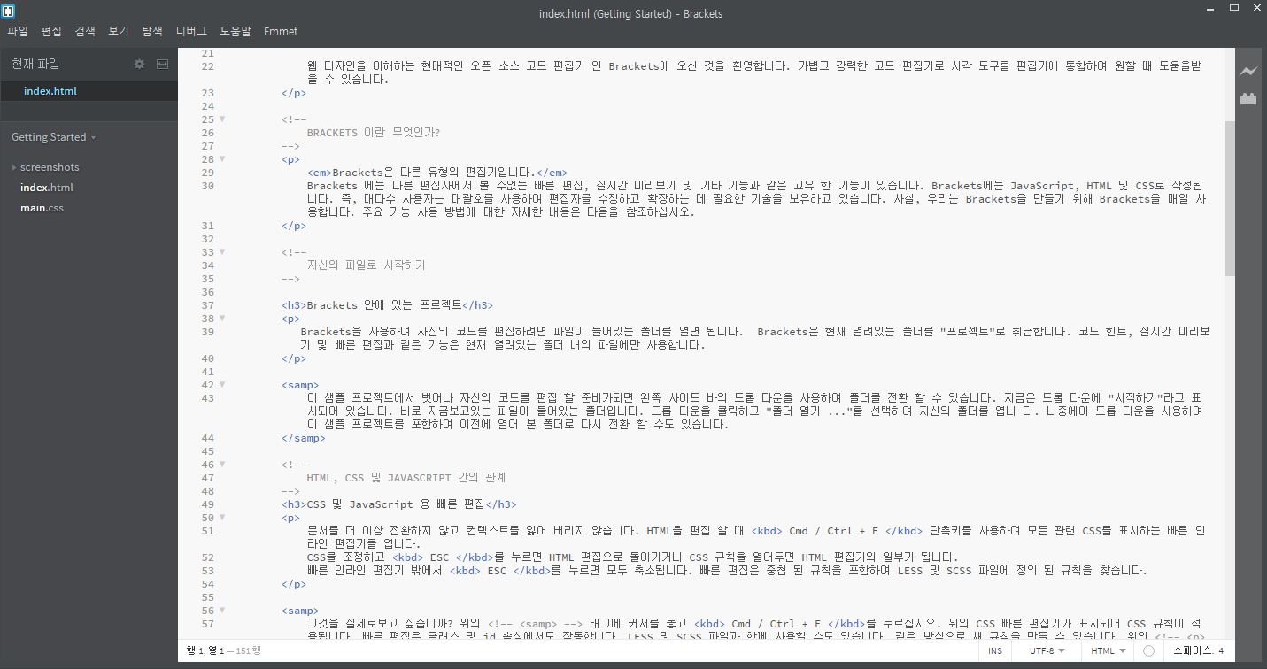 선생님 안녕하세요, brackets를 설치했는데