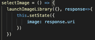 image라는 state값에 선택한 이미지의 로컬 디렉토리를 업데이트 시키는 예시입니다.