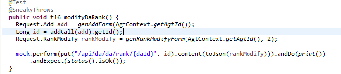 API 통신이며 JUNIT TEST에서 API 호출 시는 mock로 호출하고 있습니다.
