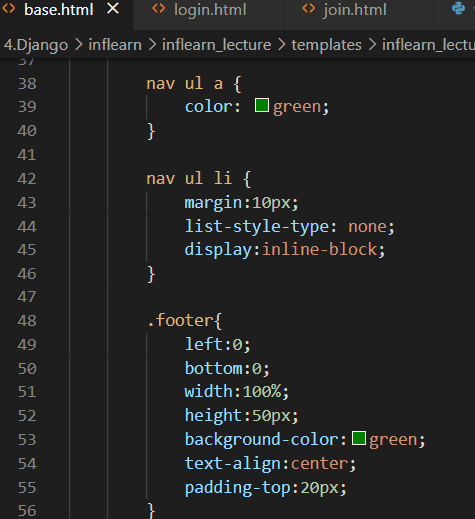 이번 강의 마지막 부분에 적용하는 스타일이 footer에도 자동 적용되어서 아래와 같이 적용이 되는데 어떤 이유에서일까요?..