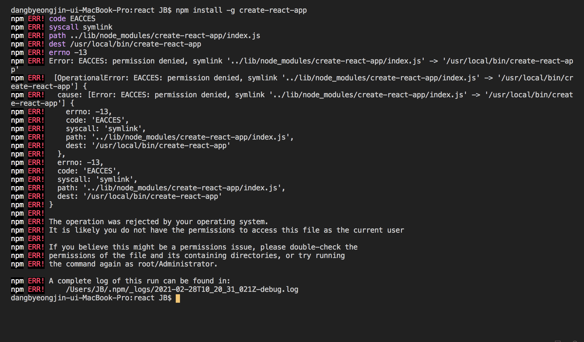 이것도 접근권한 오류인거같은데 수정권한 노드모듈에 주고나서 추가 오류가뜹니당.....