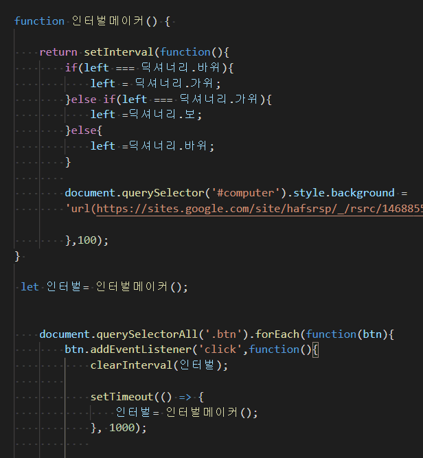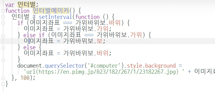 하단에 let 인터벌 = 로 선언해주었습니다!