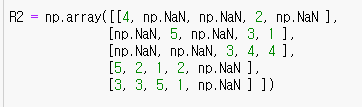 강의 초반에 임의 행렬 R로 예측행렬을 구하는 부분에서, R 행렬에 데이터를 추가해서 예측 평점이 어떻게 변하는지 실습해봤습니다.
