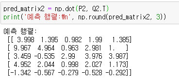 말씀하신 의미 보다는 P, Q 내에 초기화 시 행렬 값에 - 값이라던가, 이렇게 되어 있을 경우에 경사하강법으로 최대한 분해해도 - 값이 나오는 경우가 발생하는 것 같습니다.