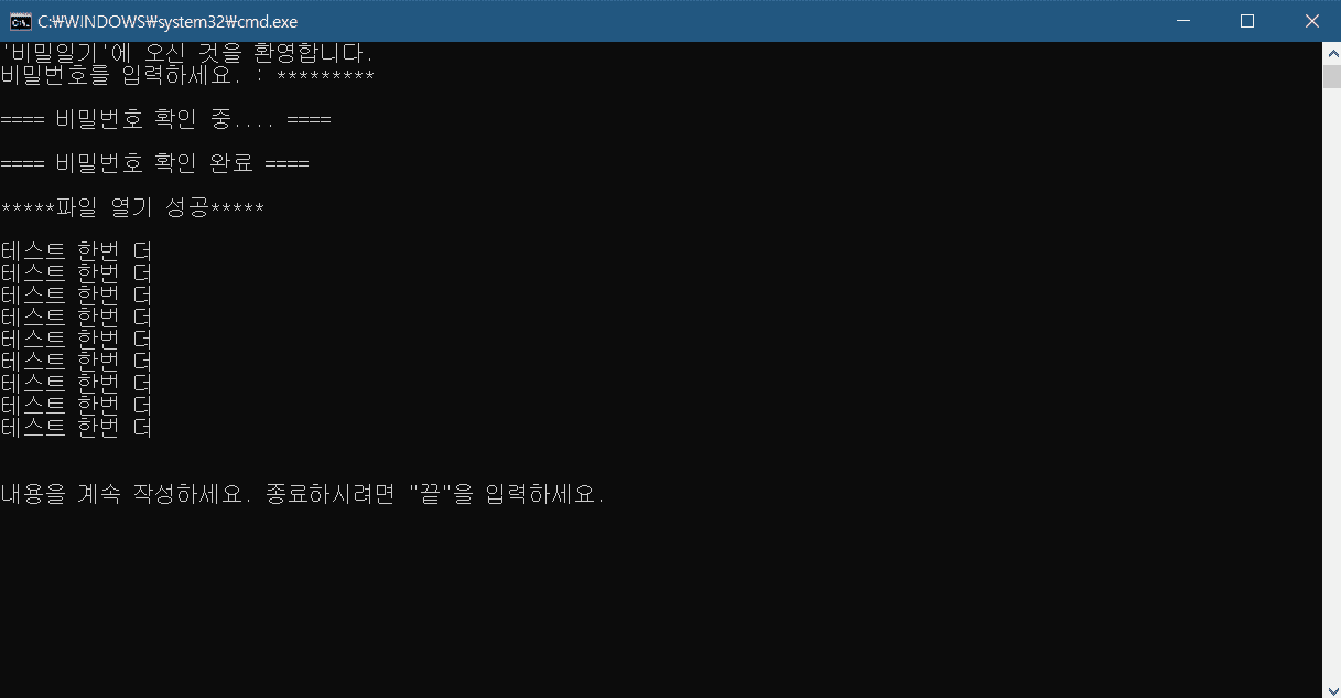 두번째와 세번째 테스트는 제가 웹사이트에서 즐겨쓰는 비밀번호(13자리 문자로만) 설정한건데 마지막 테스트에서 보시듯이 쓰레기 문자가 저렇게 많이 출력됐습니다.