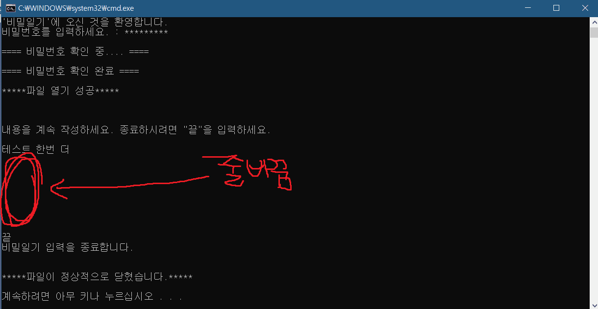 그리고 정상적으로 줄바꿈(엔터)을 입력하려면 어떻게해야하는지 가르쳐주세요 ㅜㅠ