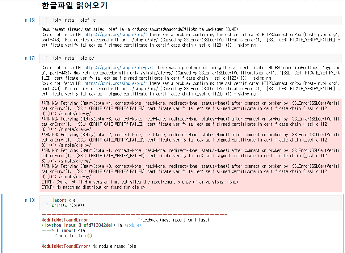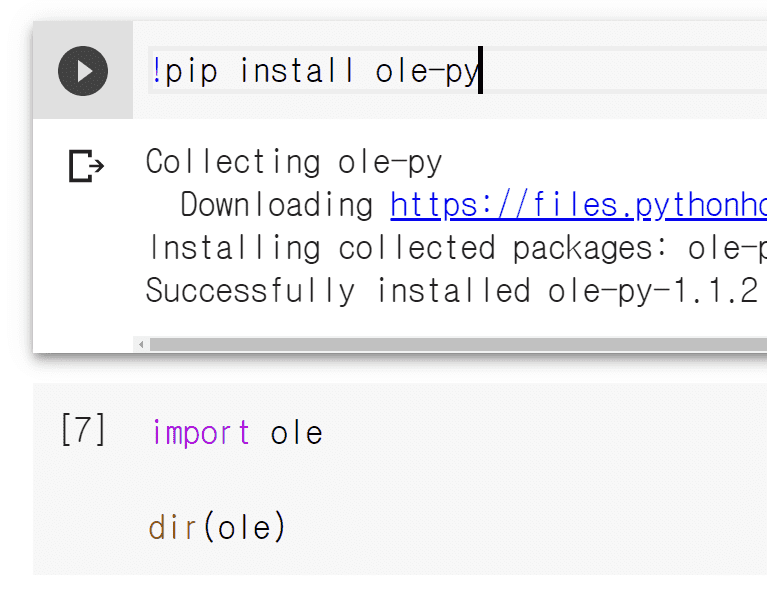 ole-py 설치가 안되는데 이유를 모르겠어요.
