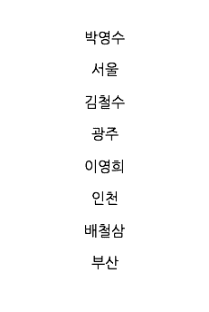 사람들의 인물명과 해당 인물의 출신 고향을 표기해줘야 한다고 가정해본다면,